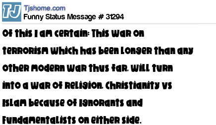 At the first poster: He sure seems to have hit a sore spot, otherwise you wouldn't be so offended. Or do you read through all of the statuses on this site, making sure they are funny? Are you the Funnypolice, then?