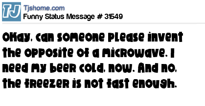 X  Okay, can someone please invent the opposite of a microwave. I need my beer cold, now. And no, the freezer is not fast enough.