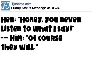 X Her: ''Honey, you never listen to what I say!'' --- Him: ''Of course they will.''