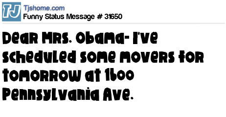 X says Dear Mrs. Obama- I've scheduled some movers for tomorrow at 1600 Pennsylvania Ave.