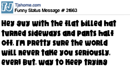 X Hey guy with the flat billed hat turned sideways and pants half off, I'm pretty sure the world will never take you seriously, ever! But, way to keep trying