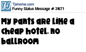 X is my pants are like a cheap hotel, no ballroom