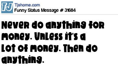 - # 125495 If you are my friend on Facebook and you need money, don't ask because I have no money. If you are family, or a friend, may I borrow some money? If you are a female and cute, don't worry, I have lots of money $$$