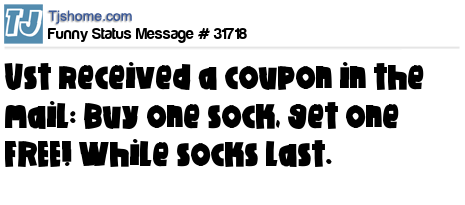 X is ust received a coupon in the mail: Buy one sock, get one FREE! While socks last.