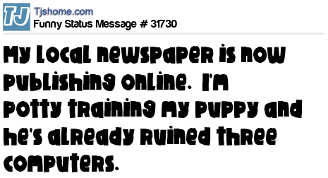 X My local newspaper is now publishing online. I'm potty training my puppy and he's already ruined three computers.