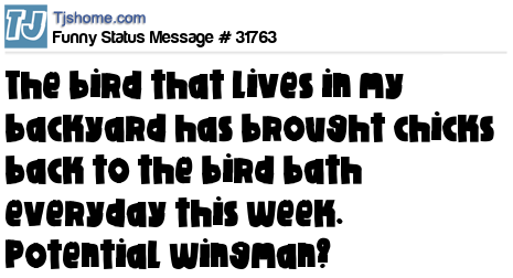 X The bird that lives in my backyard has brought chicks back to the bird bath everyday this week. Potential wingman?