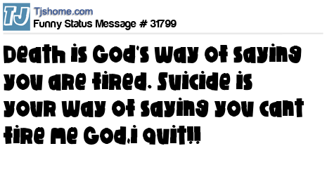 - # 24160 Suicide is away of telling God, You can't fire me I quit !!!!!