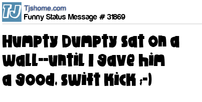 X Humpty Dumpty sat on a wall--until I gave him a good, swift kick ;-)