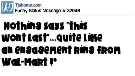 - # 36042 ...Nothing says "this wont last"...quite like an engagement ring from Wal-Mart!