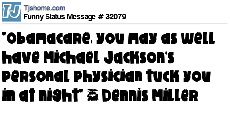 X "Obamacare, you may as well have Michael Jackson's personal physician tuck you in at night" ~ Dennis Miller