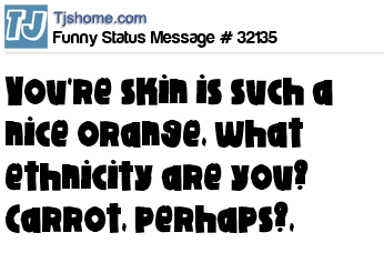 X You're skin is such a nice orange, what ethnicity are you? Carrot, perhaps?,
