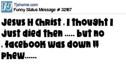X Jesus H Christ , I thought I just died then ..... but no , facebook was down !! phew......