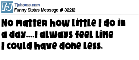 - # 9085 No matter how little I do in a day....I always feel like I could have done less.