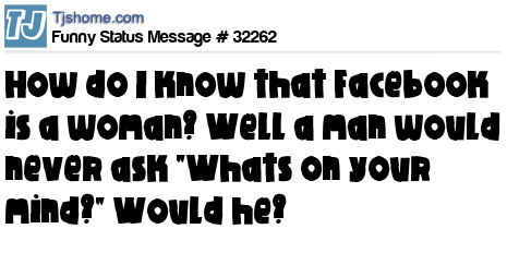 X is How do I know that Facebook is a woman? Well a man would never ask "Whats on your mind?" Would he?