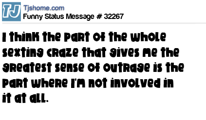 X I think the part of the whole sexting craze that gives me the greatest sense of outrage is the part where I'm not involved in it at all.