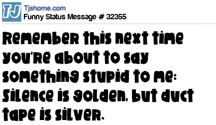 X Remember this next time you're about to say something stupid to me: Silence is golden, but duct tape is silver.