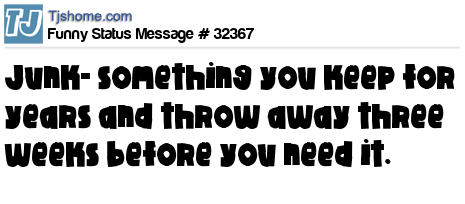 X Junk- something you keep for years and throw away three weeks before you need it.