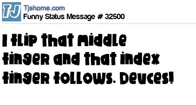 - # 86610 My new favorite way to flip people off is to put my middle finger to my forehead and say, "Look, I'm a Unicorn!" Yup. I'm that mature.