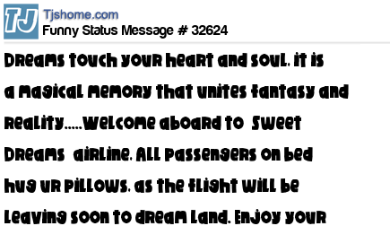 X is Dreams touch your heart and soul, it is a magical memory that unites fantasy and reality.....Welcome aboard to “Sweet Dreams” airline, All passengers on bed hug ur pillows, as the flight will be leaving soon to dream land. Enjoy your flight…“Good