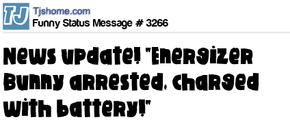 X is News update! "Energizer Bunny arrested, charged with battery!"