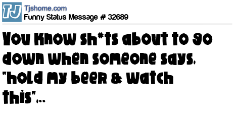 - # 17852 You know something bad is about to happen when someone says "Hold my beer and watch this."