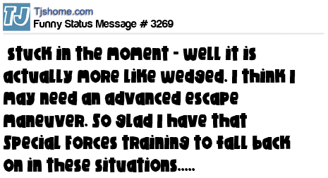 X is stuck in the moment - well it is actually more like wedged. I think I may need an advanced escape maneuver. So glad I have that Special Forces training to fall back on in these situations.....
