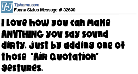 X says I love how you can make ANYTHING you say sound dirty, just by adding one of those "Air Quotation" gestures.