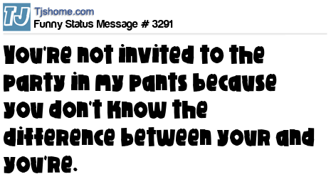 X is You're not invited to the party in my pants because you don't know the difference between your and you're.