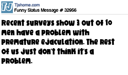 X says Recent surveys show 3 out of 10 men have a problem with premature ejaculation. The rest of us just don't think it's a problem.