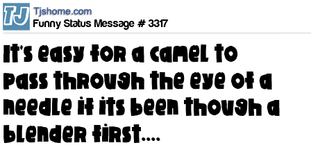 - # 3407 It's easy for a camel to pass through the eye of a needle if its been though a blender first....