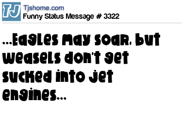 - # 98366 Eagles may soar, but weasels don't get sucked into jet engines.