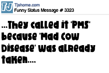 - # 137368 It's called PMS because Mad Cow Disease was already taken.