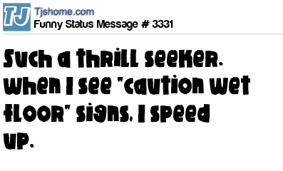 X is such a thrill seeker. when I see "caution wet floor" signs, I speed up.