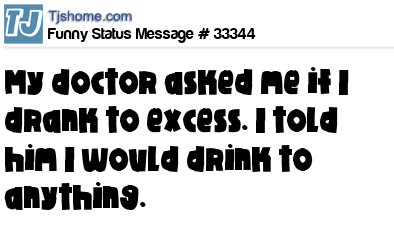 X My doctor asked me if I drank to excess. I told him I would drink to anything.
