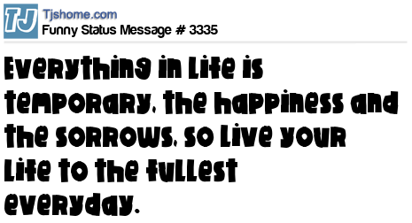 - # 67151 You only live once. Have fun, enjoy life to the fullest, do what you want and don't look back, smile, love somebody. live for the future, not the past. Life is too short to be p!ssed off all the time!