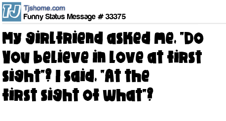 X My girlfriend asked me, "Do You believe in love at first sight"? I said, "At the first sight of what"?