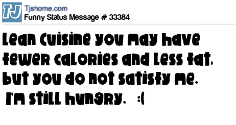 X is Lean Cuisine you may have fewer calories and less fat, but you do not satisfy me. I'm still hungry. :(