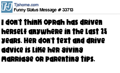 X I don't think Oprah has driven herself anywhere in the last 25 years. Her don't text and drive advice is like her giving marriage or parenting tips.
