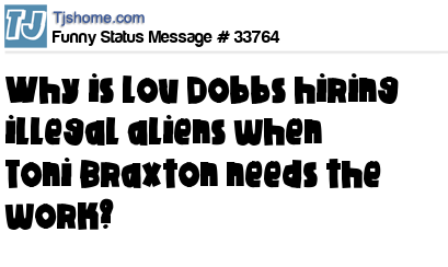 X Why is Lou Dobbs hiring illegal aliens when Toni Braxton needs the work?