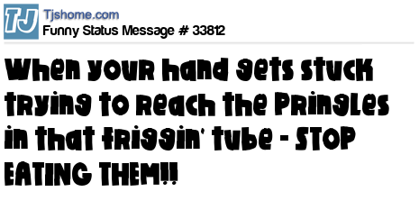 X when your hand gets stuck trying to reach the Pringles in that friggin' tube - STOP EATING THEM!!