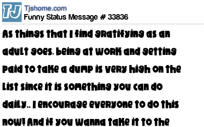 X is As things that I find gratifying as an adult goes, being at work and getting paid to take a dump is very high on the list since it is something you can do daily.. I encourage everyone to do this now! And if you wanna take it to the next level, rub one out