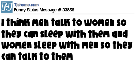 X says I think men talk to women so they can sleep with them and women sleep with men so they can talk to them