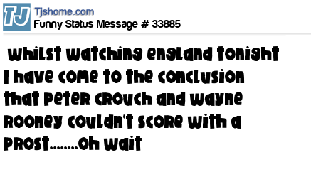 X is whilst watching england tonight I have come to the conclusion that peter crouch and wayne rooney couldn't score with a prost........oh wait
