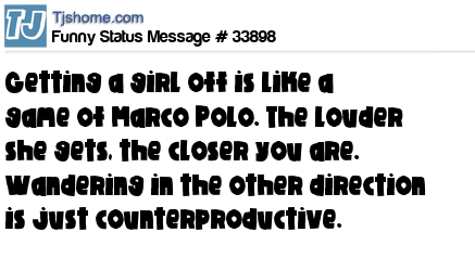 X Getting a girl off is like a game of Marco Polo. The louder she gets, the closer you are. Wandering in the other direction is just counterproductive.