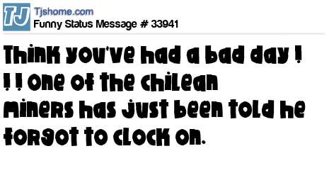X is Think you've had a bad day ! ! ! One of the chilean miners has just been told he forgot to clock on.
