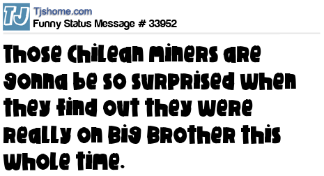 X Those Chilean miners are gonna be so surprised when they find out they were really on Big Brother this whole time.