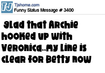 X is glad that Archie hooked up with Veronica..my line is clear for Betty now