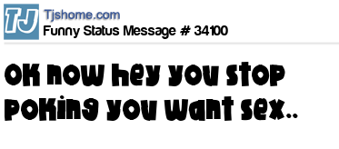 - # 173025 Ladies, unless you really want to bang me, please stop poking me if you're not going to follow through. . .