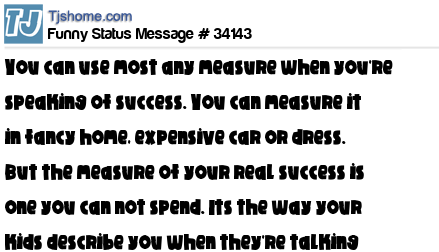 X says You can use most any measure when you're speaking of success. You can measure it in fancy home, expensive car or dress. But the measure of your real success is one you can not spend. Its the way your kids describe you when they're talking to a friend.