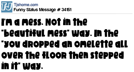X I'm a mess. Not in the "beautiful mess" way. In the "you dropped an omelette all over the floor then stepped in it" way.